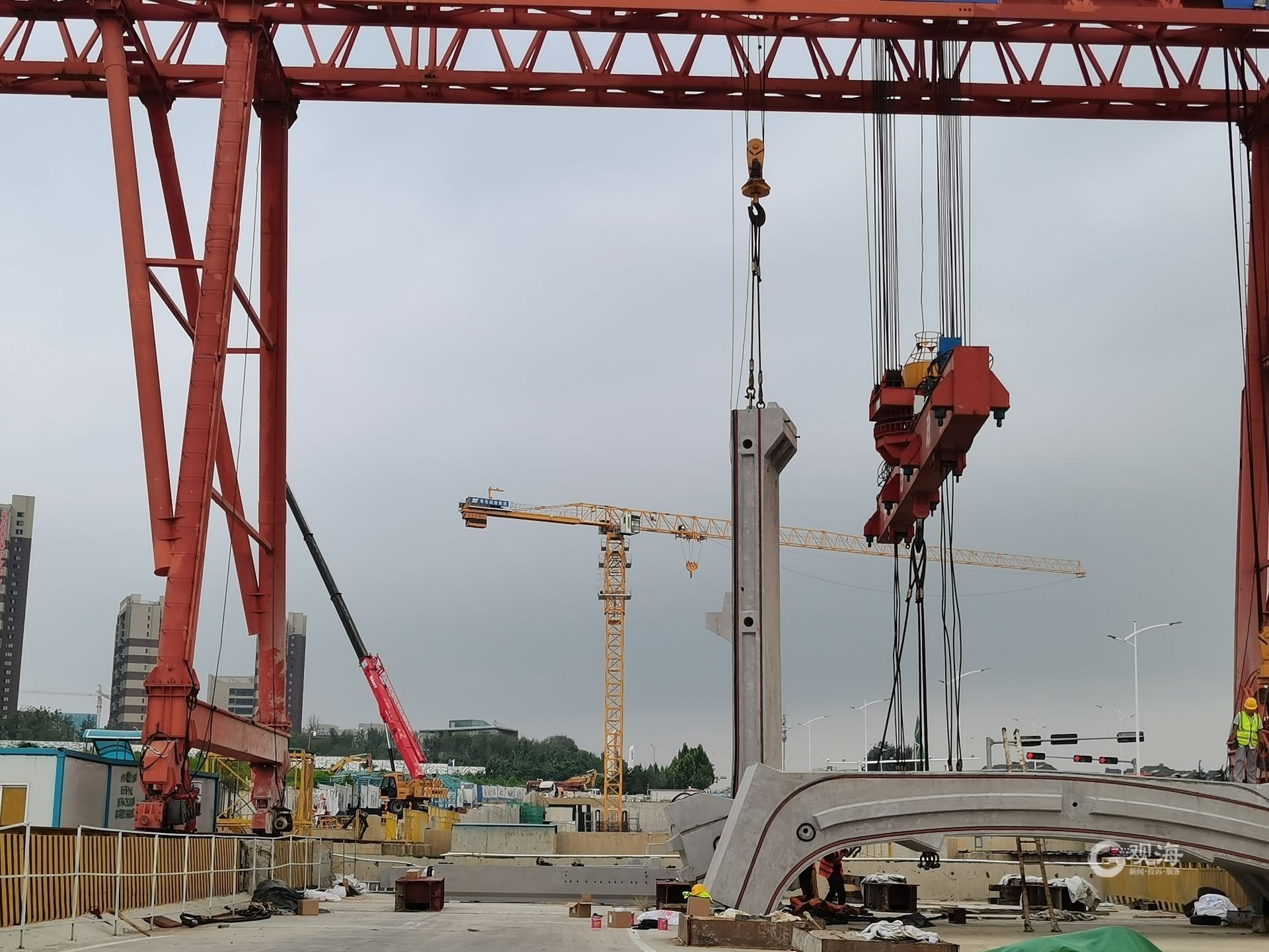 由青岛市政空间开发集团城轨公司承建的地铁6号线07工区河洛埠站装配结构正在加紧拼装。