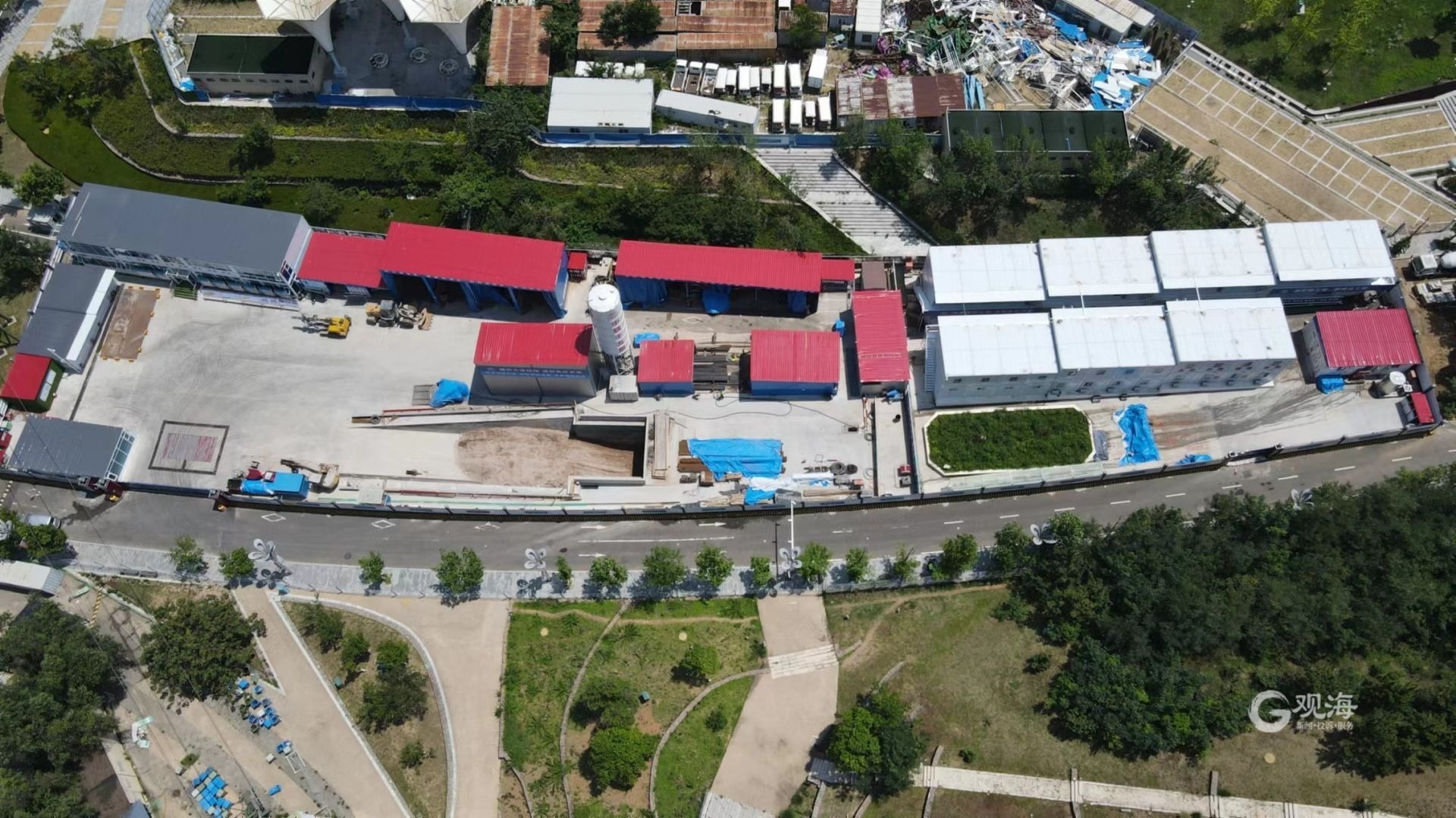 龙川路站为地铁2号线二期工程的第7座车站,位于龙川路与世园大道交叉口,沿世园大道东西向布置,为地下两层岛式车站。作为全线建设进度较快的车站,龙川路站在今年4月就完成了斜井明挖围护桩施工,今年6月在三期线路中首个实施了爆破施工。目前,龙川路站斜井明挖段已完成开挖支护,暗挖段进洞导向墙及管棚已经施工完成,施工验收已顺利通过,1号和2号竖井正在实施电力和给水管线的迁改工作。日前,在中铁十九局集团有限公司青岛地铁2号线二期土建06工区总工程师张帅的带领下,记者来到龙川路站斜井暗挖段入口处探访时发现:工人们正在打设超前探孔,提前探测施工作业面前方的地质、水文条件;几名电焊工头顶烈日,加紧制作暗挖施工的操作平台。